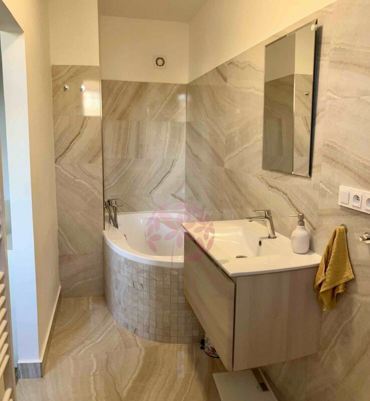 Byt se nachází v komorním domě pouze o 6 bytech a prošel kompletní rekonstrukcí v roce 2024. Součástí je moderně vybavená kuchyň s myčkou, indukcí, mikrovlnnou troubou a lednicí, dále koupelna s vanou, samostatné WC a pračka se sušičkou. Byt je částečně zařízen.